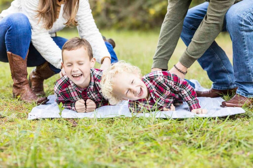 Two little boys – a lot of giggles and lots of rough housing.